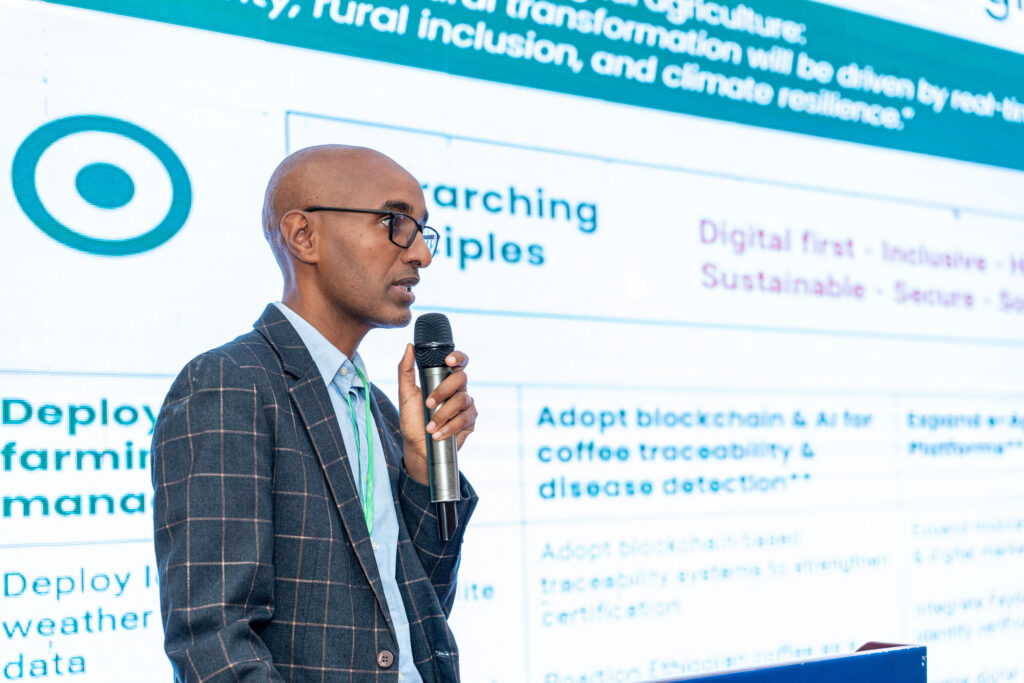 The day moved through presentations of landscape-mapping and into design work. A Project Management Unit responsible for delivering the Digital Agriculture Roadmap (DAR-PMU) progress update covered ecosystem coordination, use case landscaping, and the need for stronger strategic alignment across initiatives. An AI ecosystem overview mapped existing initiatives, key actors, and critical gaps. ATI showcased three major initiatives underway with partners: an AI-powered agricultural knowledge base, farmer profiling systems, and the Ethiopian Open AgriNet Program. Ethiopia’s national AI strategy was also presented, with agriculture identified as a priority sector, alongside governance frameworks and capacity-building priorities. Language technology partners demonstrated TTS, STT, and ASR systems in local languages — the kind of infrastructure that determines whether advisory services are actually accessible to farmers or just technically available to them.